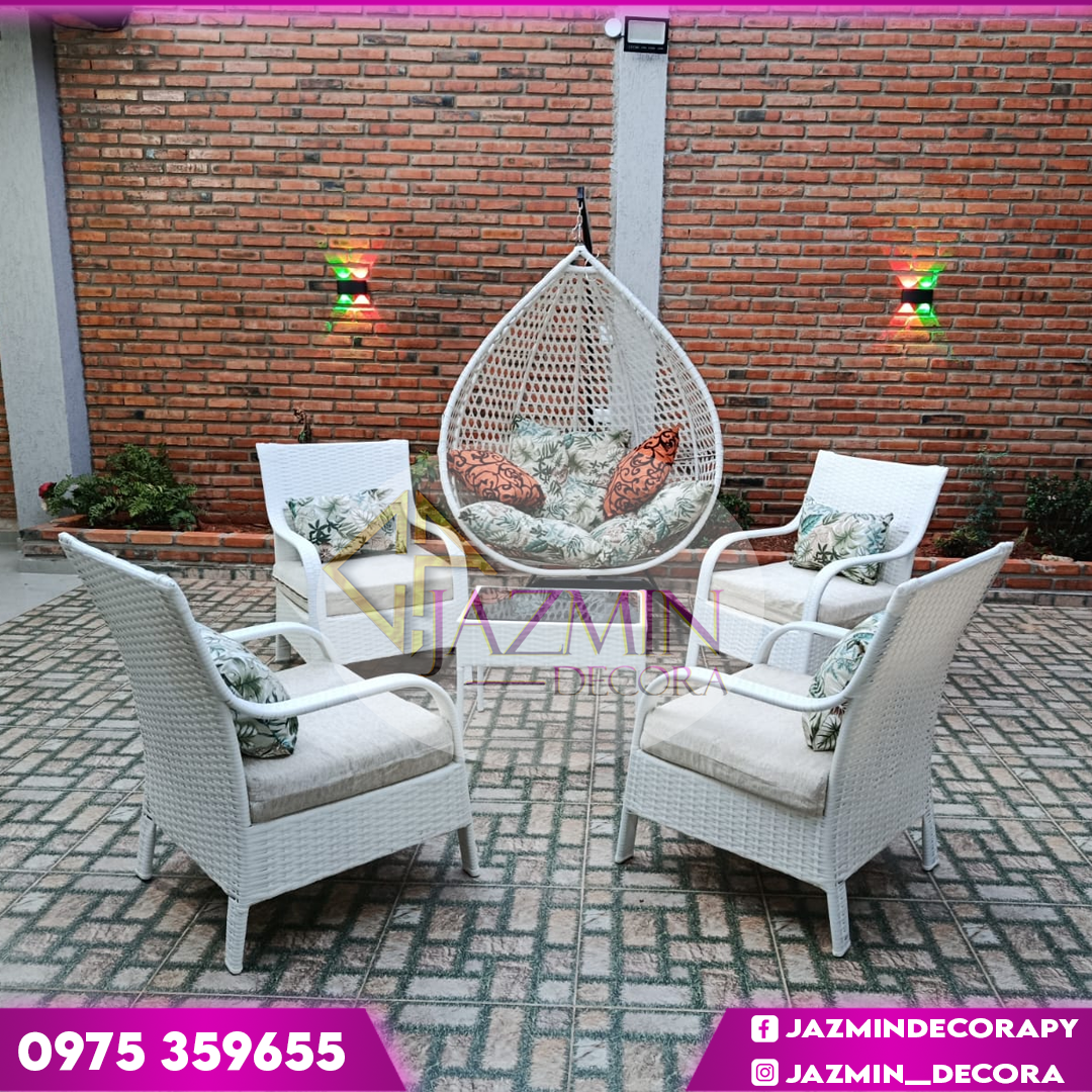 Combo Ratan Blanco Con almohadas